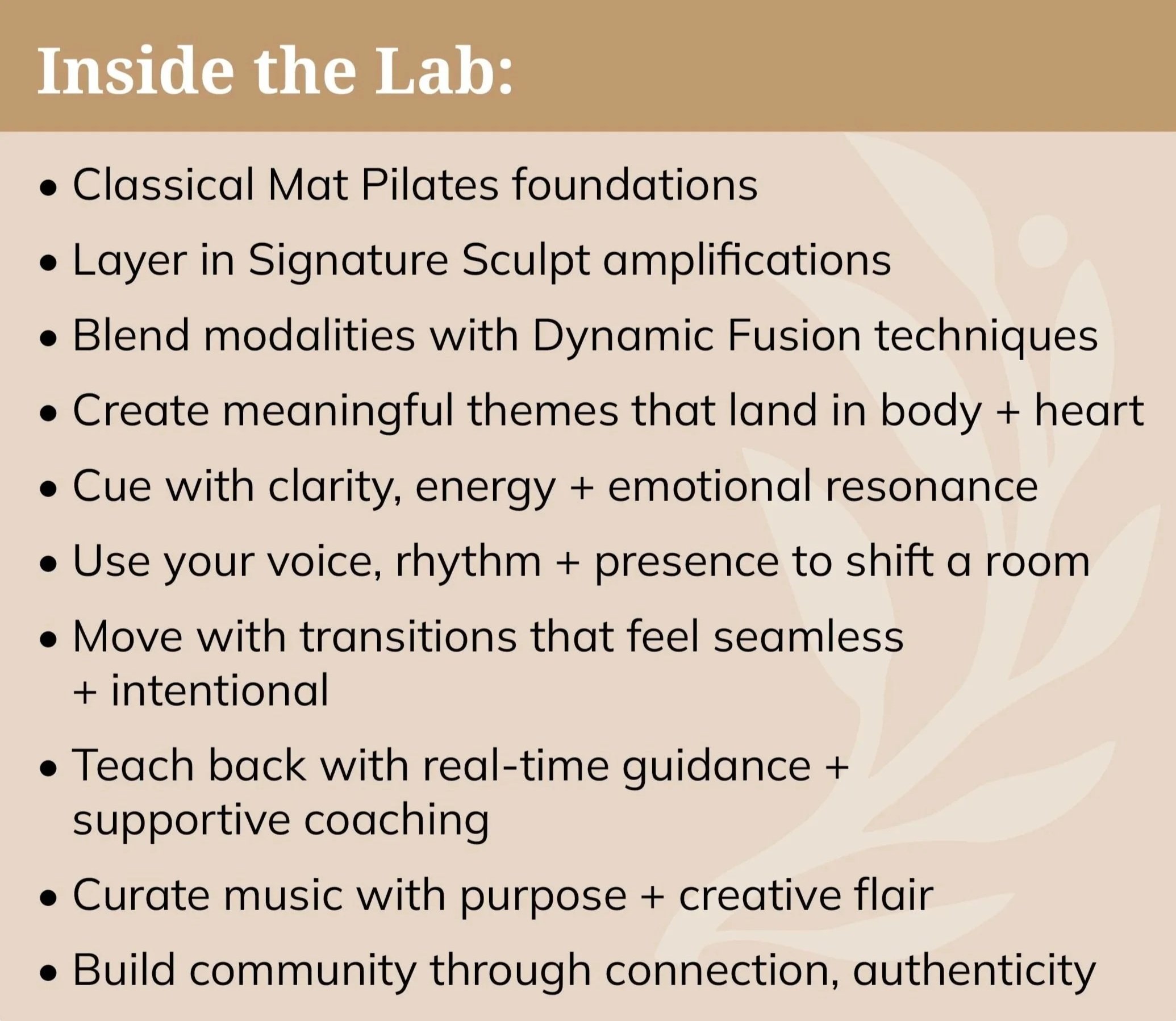 Here is the place to refine your craft, unlock your voice, + become the instructor people keep coming back to.
